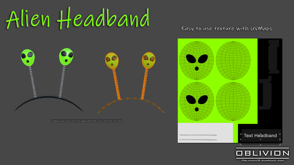 Alien headband. Includes photoshop texture, unity package, fbx and blender files.